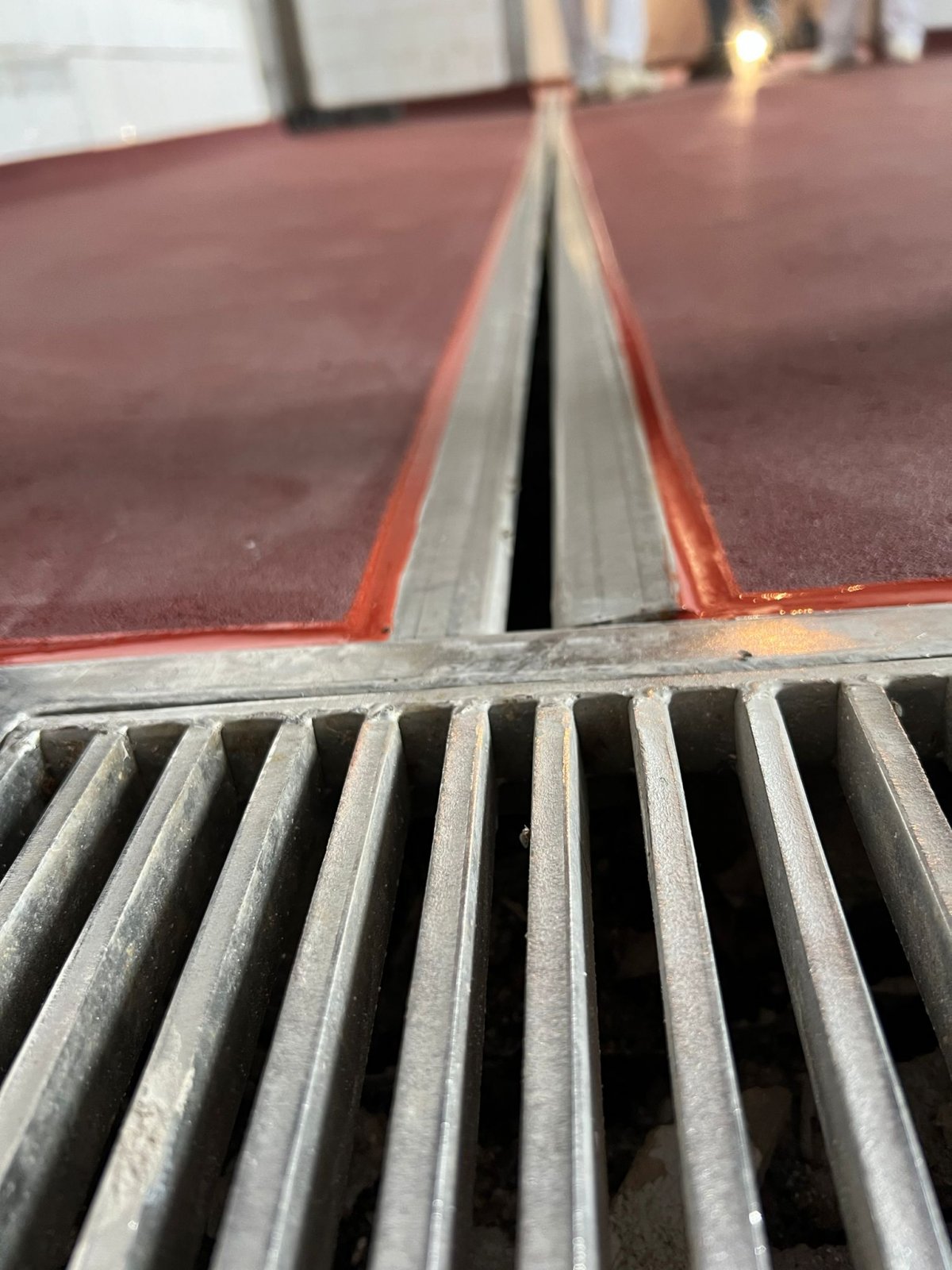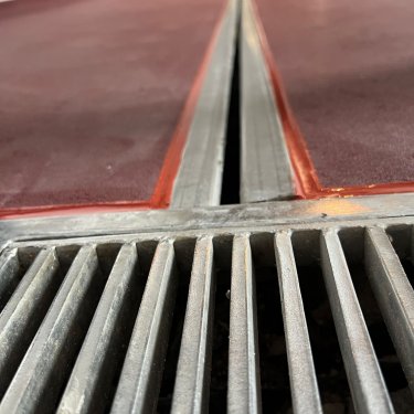 Na teplotně velmi exponovaná místa (přes 100 °C) byl použit litý polyuretanbetonový systém Ucrete tl. 9 mm s protiskluzností R12 a vynikající chemickou a teplotní odolností.