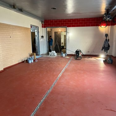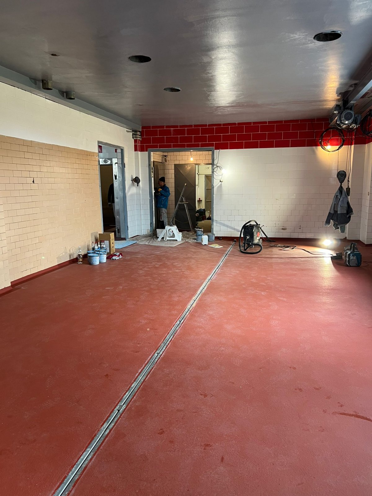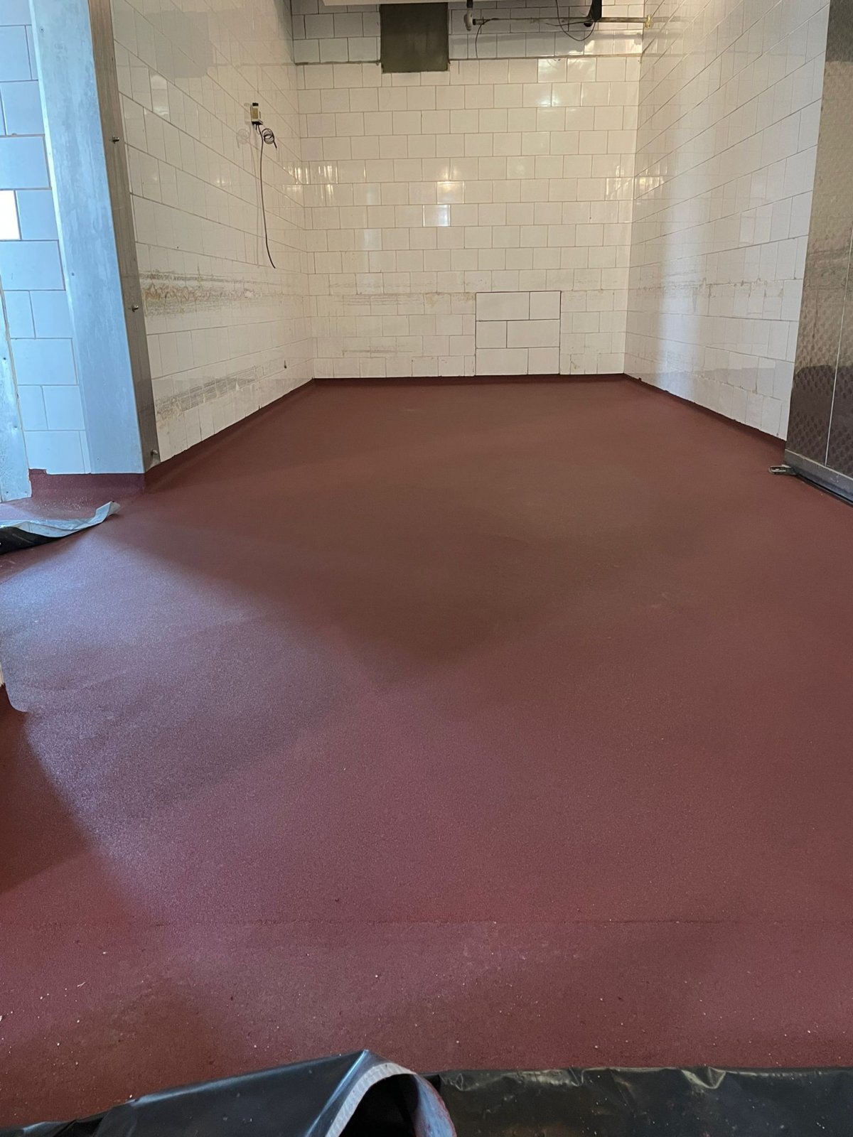 Při rekonstrukci byl na teplotně méně exponovaná místa (do 65 °C) použit podlahový systém IQ floor EPG tl. 6 mm – strojně hlazený epoxidbeton o pevnosti v tlaku 75 Mpa s vynikající mechanickou i chemickou odolností v šedé barvě se střední protiskluzovou úpravou.
